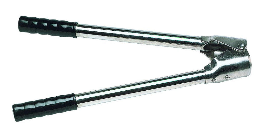 A Barnes dehorner is a hinged, closed set of sharp scoops which is placed over the horn against the base and surrounding skin. Opening the handles forces the cutting edges together, slicing through the skin and under the horn.