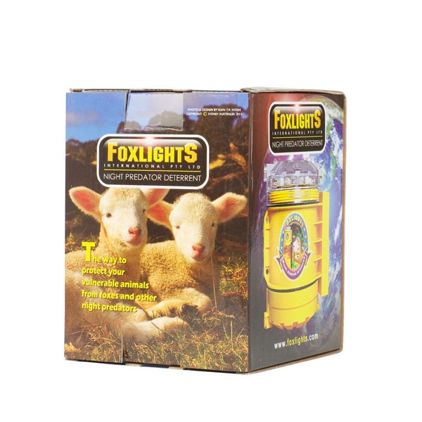 Foxlights gives the impression of someone walking around the area with a flashlight by using a varying flash of blue and white light with varying time sequences. This will deter predators from entering the paddock.
