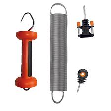 A complete gate set with galvanised spring, gate handle and gate handle anchor. Suited for 5m wide gateways.Not recommended for use with horses.