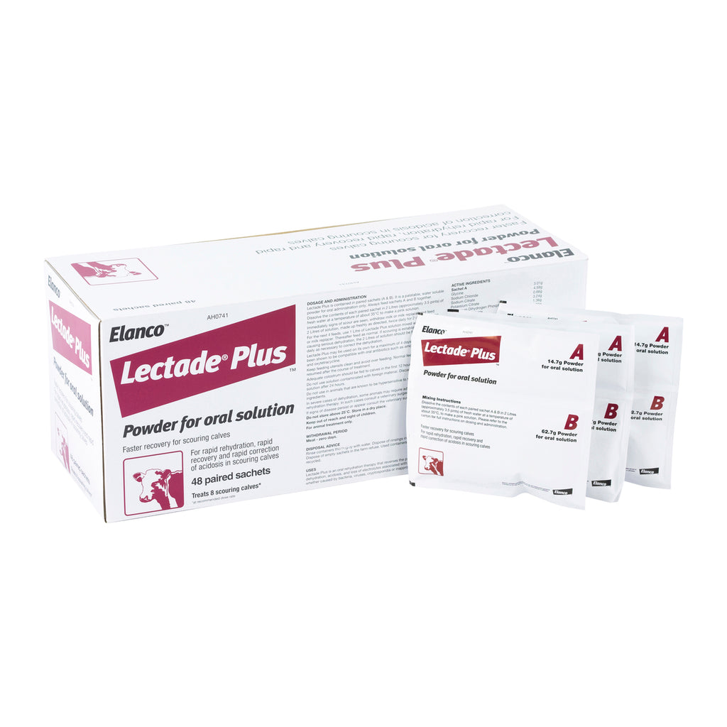 Lectade Plus is a powdered oral solution that is used to speed up recovery in scouring calves. Lectade Plus does this by supplying the calf with essential minerals lost through scour and by rehydrating the calves.