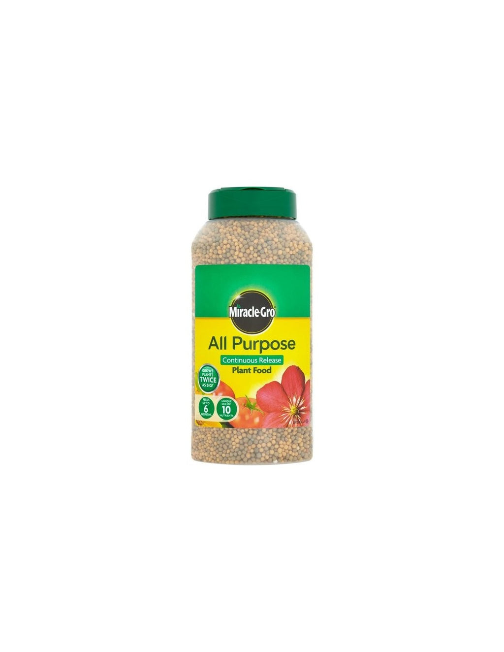 Miracle-Gro Continuous Release granules release tiny amounts of plant food each day, ensuring plants aren't short of nutrients over the 6 month growing season. One application ensures feeding throughout the entire season, saving you time as regular feeding is not required.