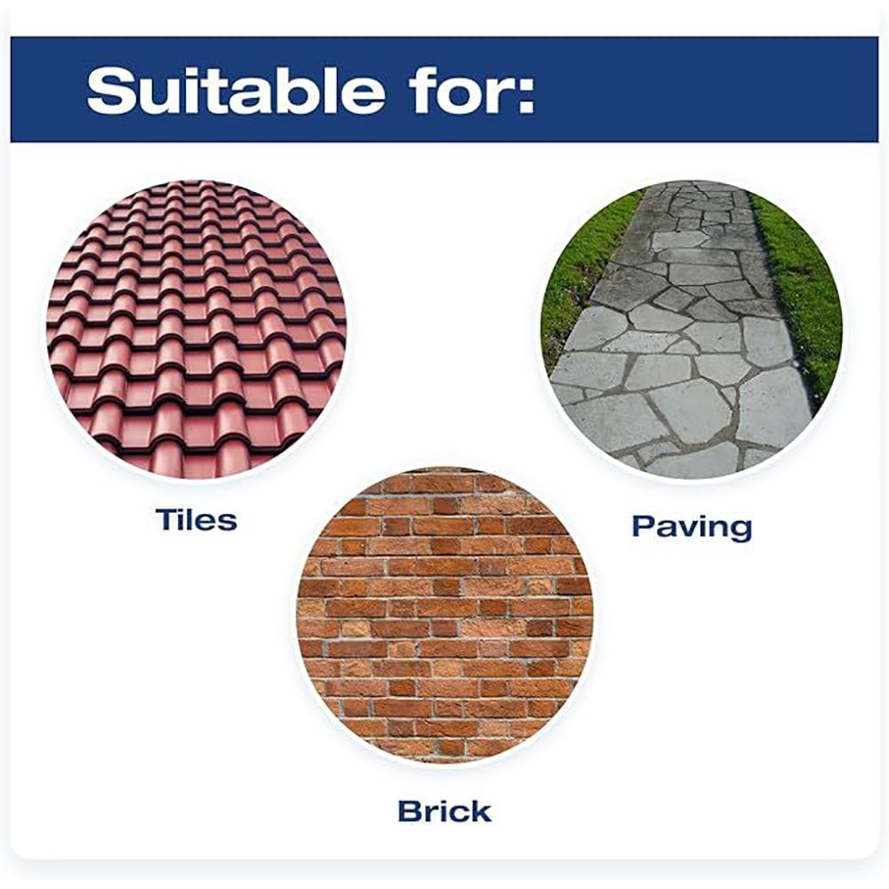 This outdoor cleaner is designed to eliminate contaminants at the source, preventing regrowth for months. It is ideal for use on a wide range of surfaces, including stone, brick, tarmac, concrete, fibreglass, and even headstones. Its non-bleach, non-acidic formula ensures safe and effective cleaning without damaging surfaces.