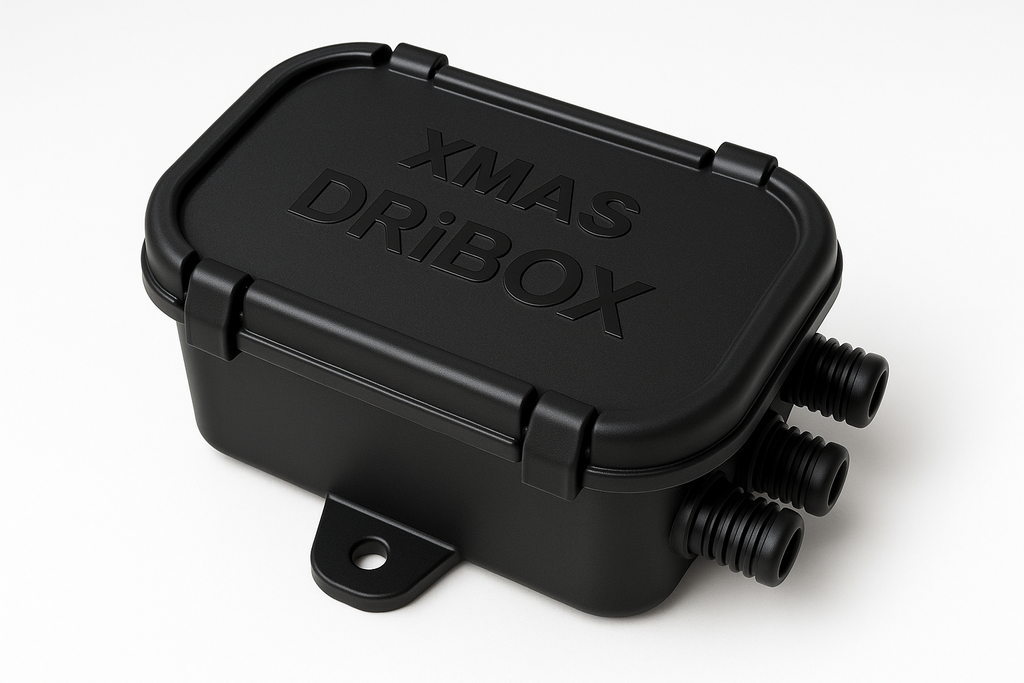 The XMAS DRiBOX Black Medium is the perfect weatherproof solution for your outdoor Christmas lighting connections. This durable black electrical connection box keeps your holiday light connections safe and dry throughout the festive season.
